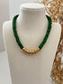 AVEN ALTIN KAPLAMA DETAYLI YEŞİL CAM BONCUK KOLYE