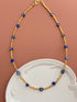 NAVİ LACİVERT ÇİÇEKLİ ALTIN KAPLAMA DETAYLI KOLYE