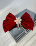 İTHAL KIRMIZI İNCİLİ ÇİÇEK DETAYLI TAŞLI KADİFE FİYONK TOKA