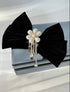İTHAL SİYAH İNCİLİ ÇİÇEK DETAYLI TAŞLI KADİFE FİYONK TOKA