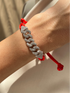 KIRMIZI İPLİ TAŞLI ZİNCİR DETAYLI BİLEKLİK