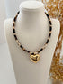 İTHAL KALP DETAYLI LEOPARLI DERİ KORDONLU KOLYE
