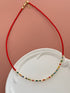OREA ALTIN KAPLAMA KÜP DETAYLI KIRMIZI BONCUK KOLYE