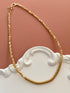 NUA SARI DOĞAL TAŞLI ALTIN KAPLAMA DETAYLI KOLYE