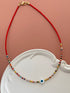 TEVA SEDEFLİ NAZAR NONCUK DETAYLI ALTIN KAPLAMA DORİKA KIRMIZI BONCUK KOLYE