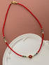 NARA YILDIZ DETAYLI ALTIN KAPLAMA DORİKALI KIRMIZI BONCUK KOLYE
